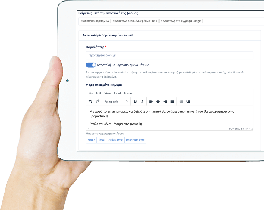 Προσάρμοσε πεδία, κανόνες και ενσωμάτωσε σε site ή microsite πανεύκολα.