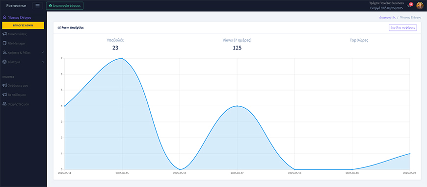Παρακολούθηση υποβολών και conversion rate ανά φόρμα.